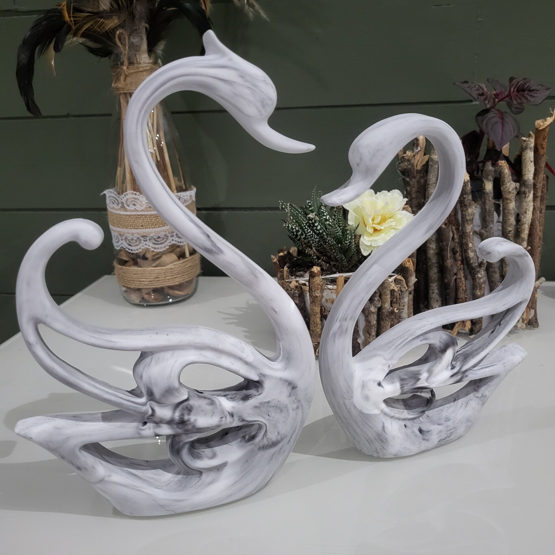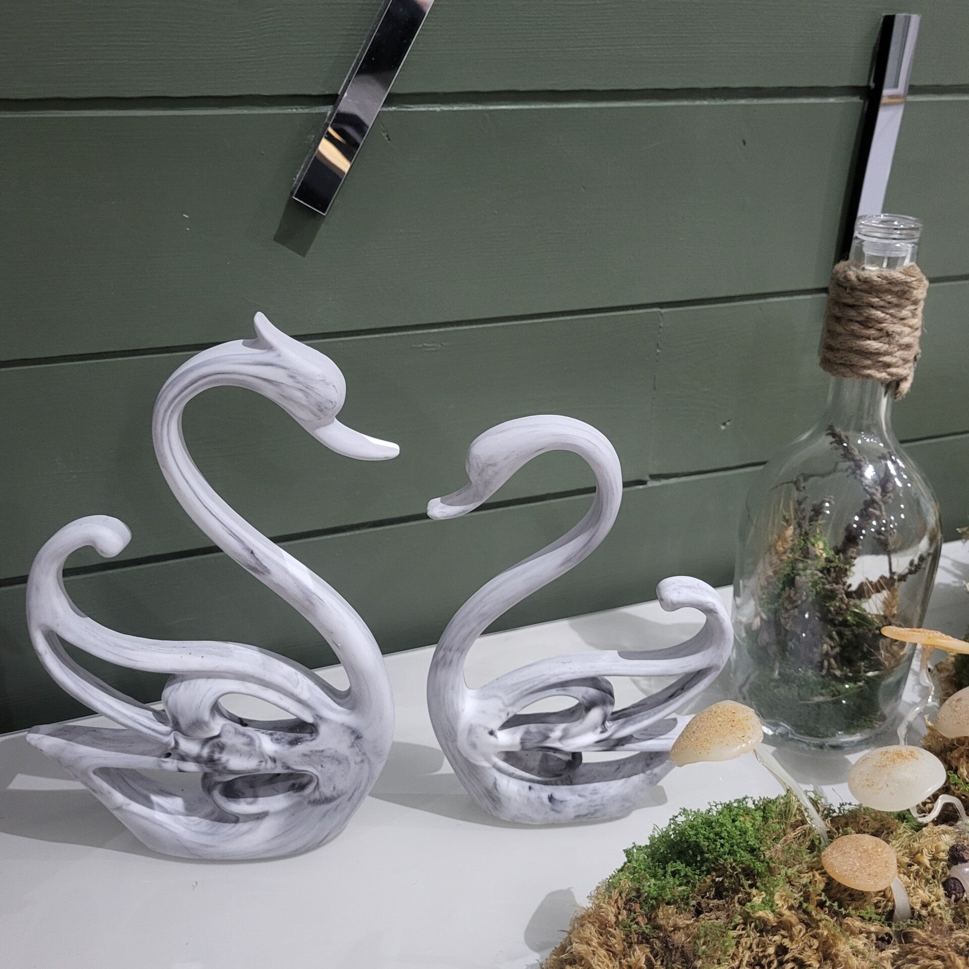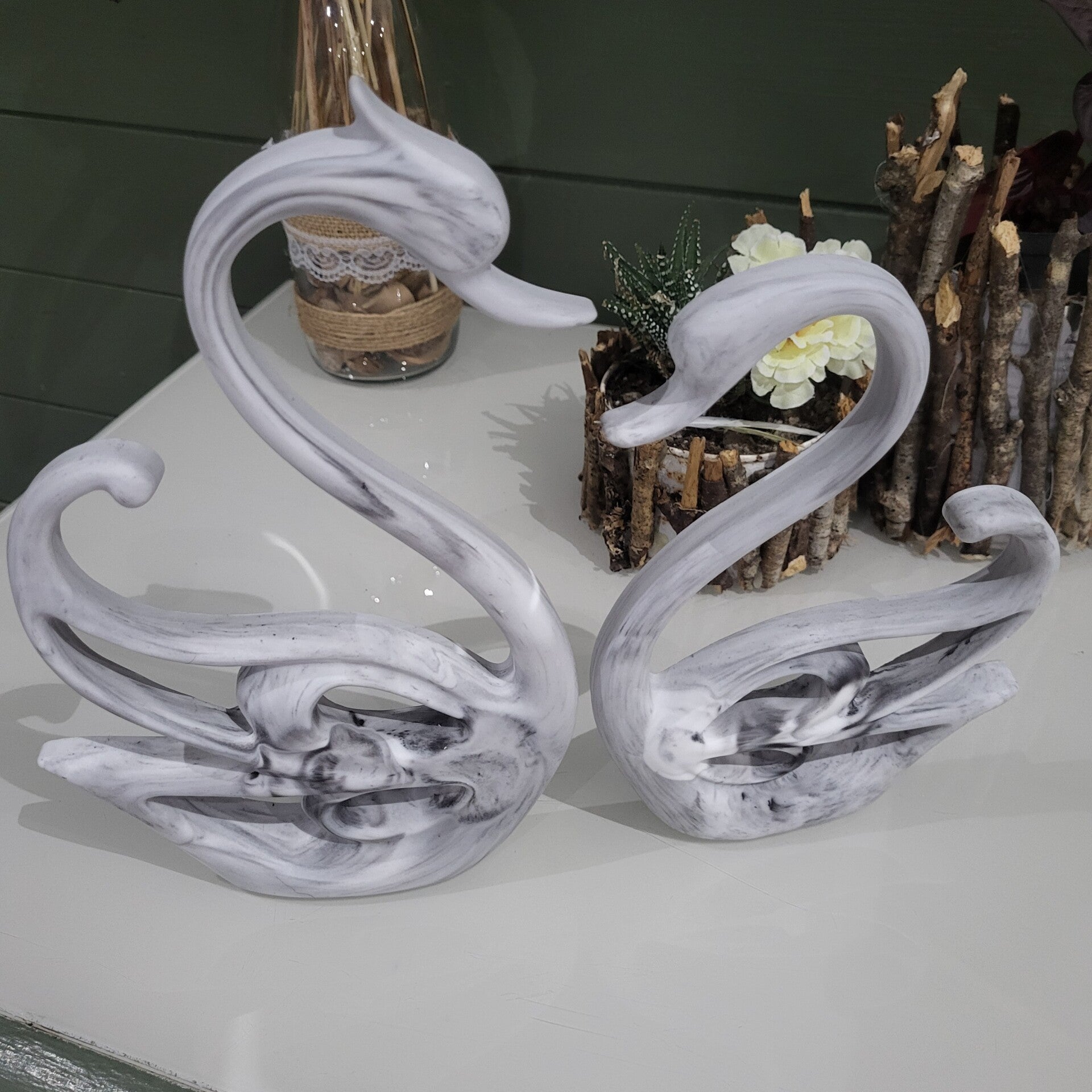 Duo de cygnes en poudre de céramique. Couleurs au choix,effets au choix. Dimensions grand cygne: h=24.5 petit cygne: h=20
