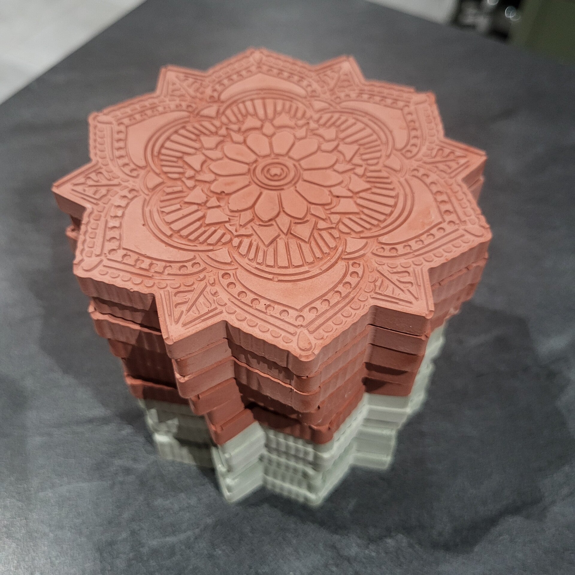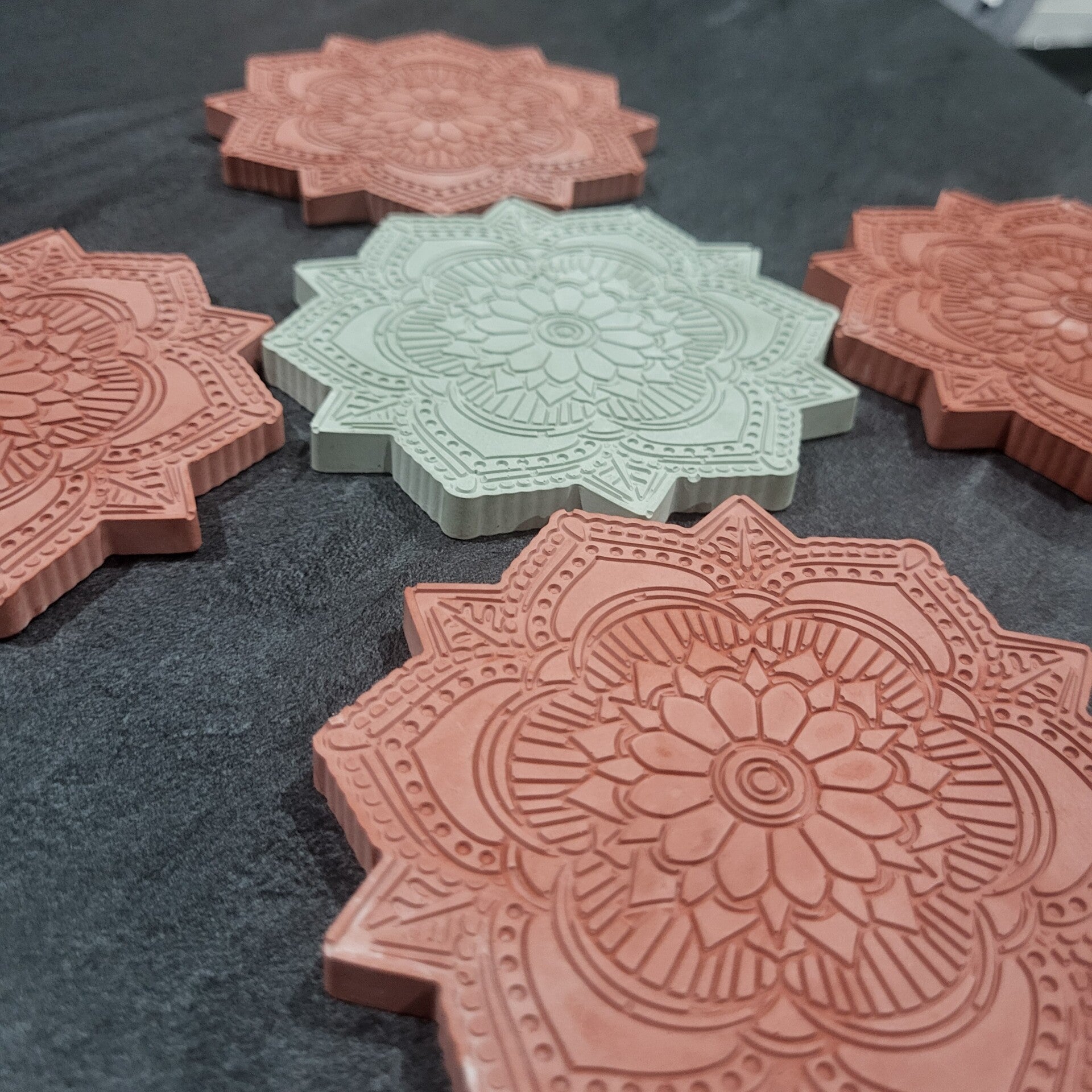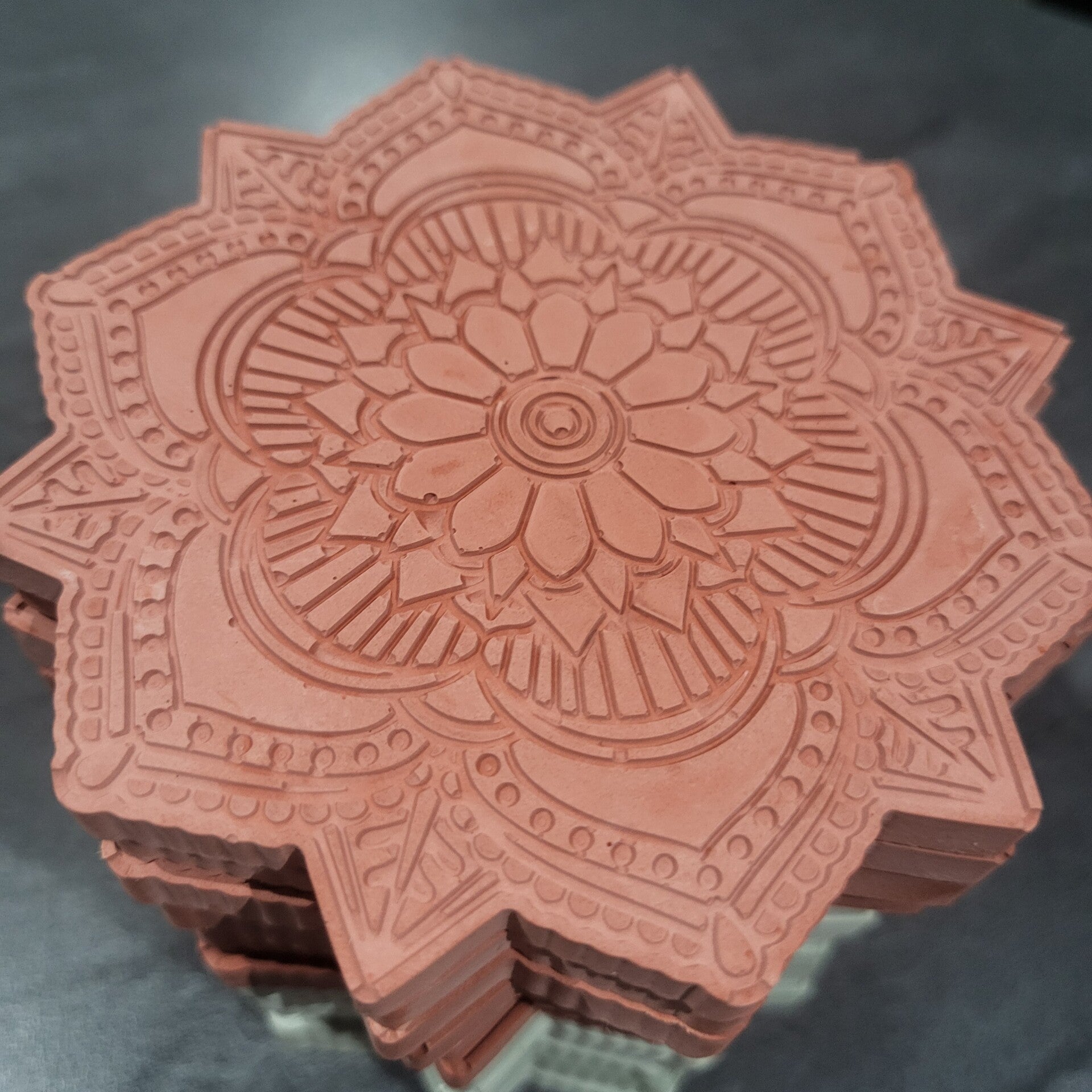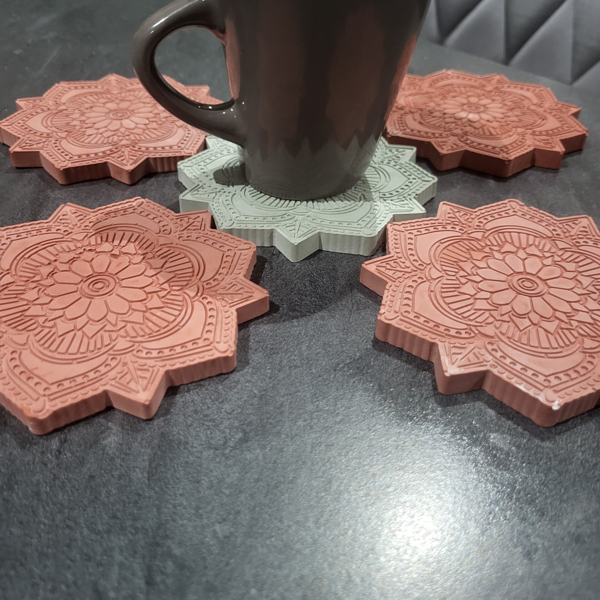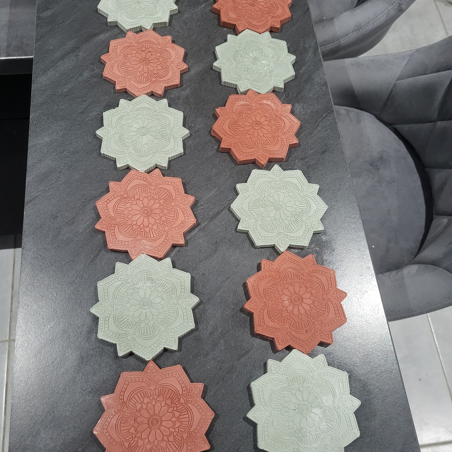 Lot de 6 dessous de verre mandala fleurs. Dimension : D:10,5