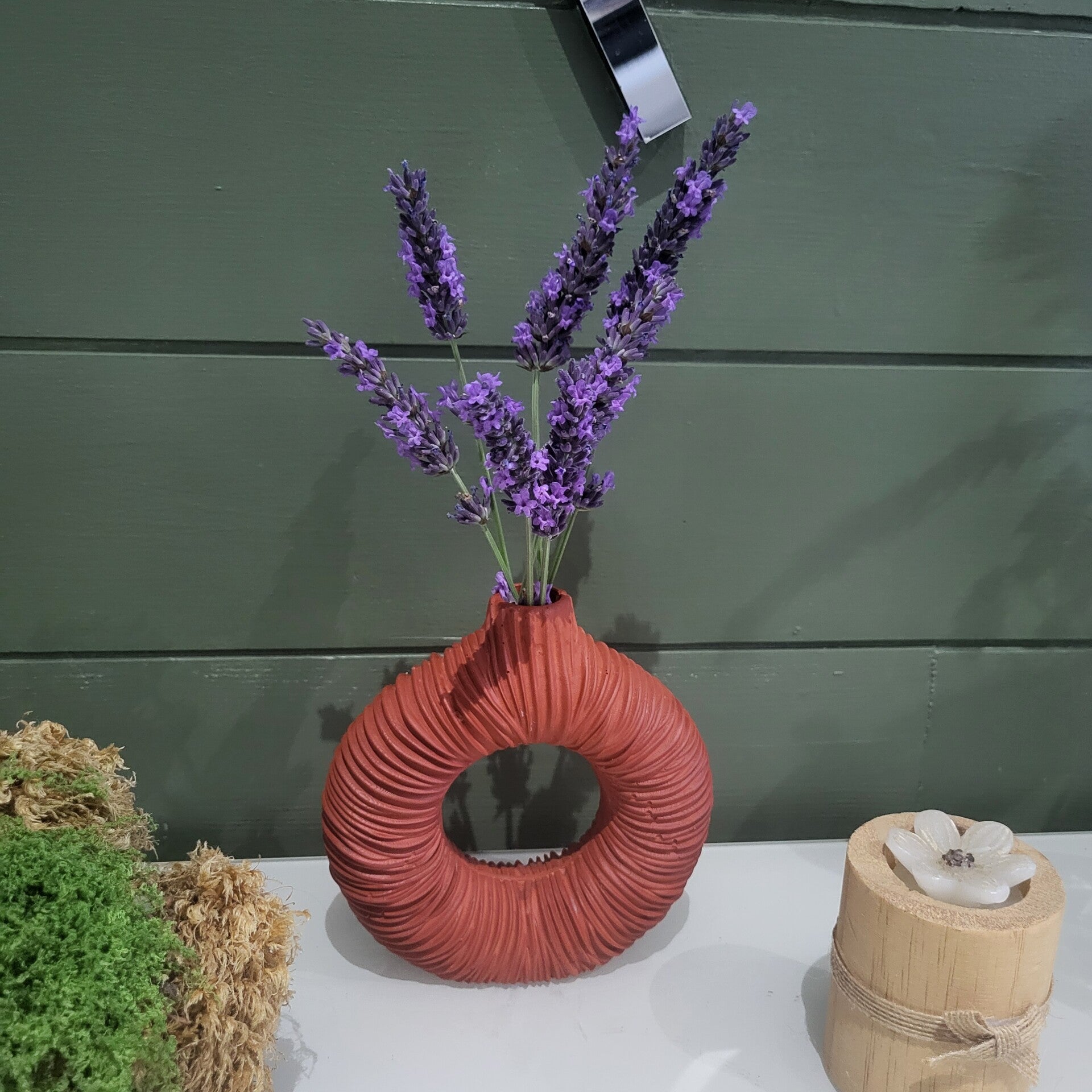 Vase rond froissé (sans fleurs). Dimensions ~