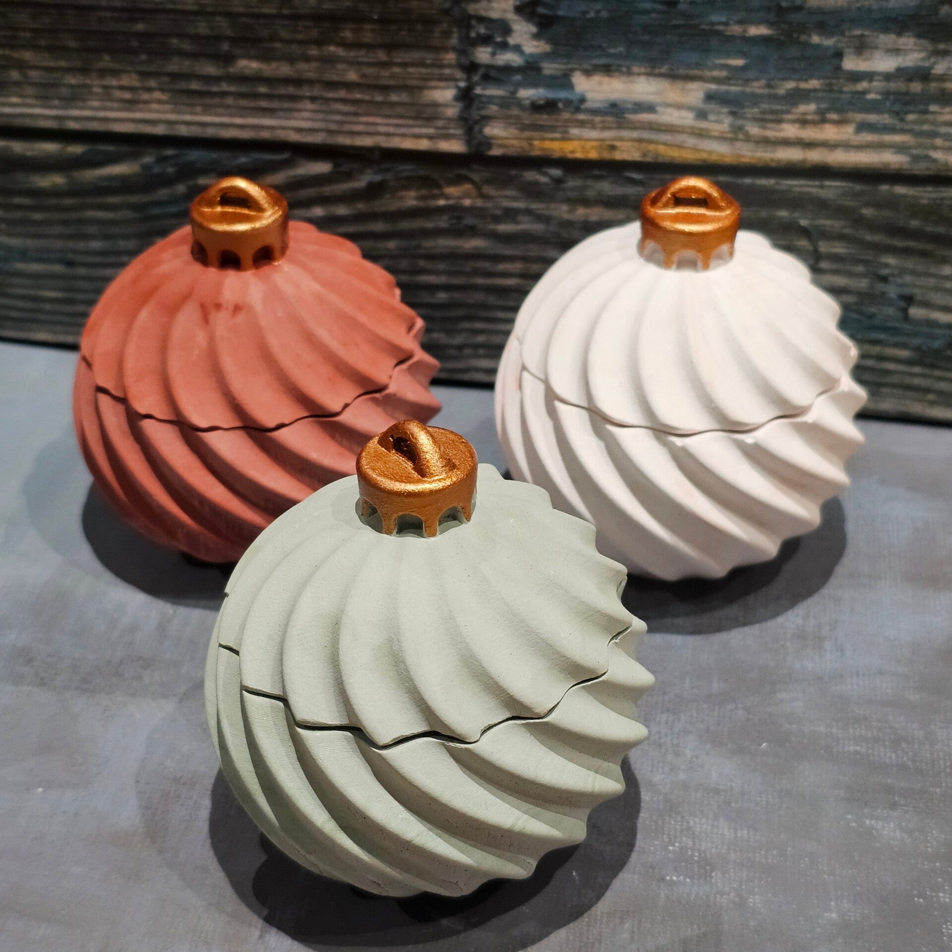 Boîte en forme de boule de Noël, une bougie chauffe-plat offerte. Dimensions ~